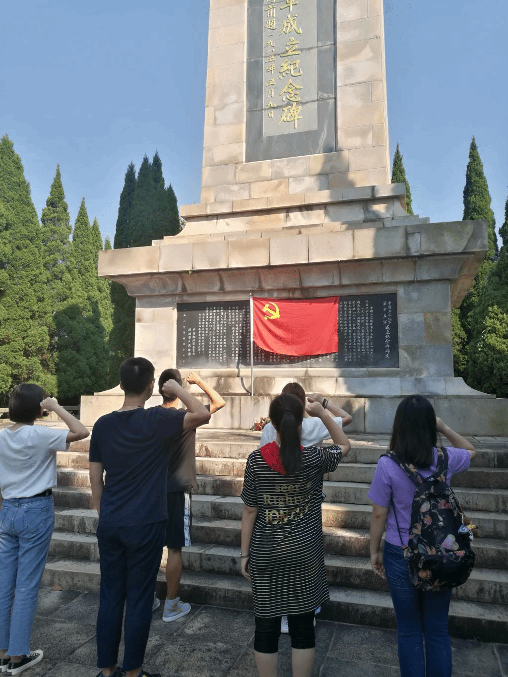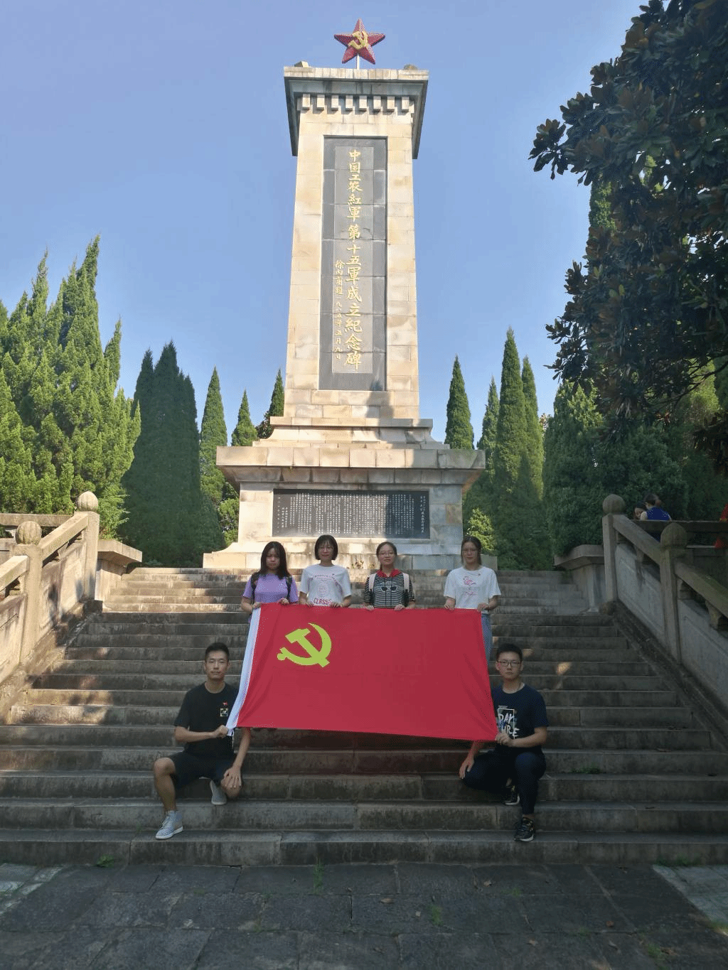 7月21日,经管院赴黄梅县暑期实习临时党支部成员前往位于黄梅县大河镇吴祥村牛头山的红十五军纪念碑进行缅怀先烈活动。
