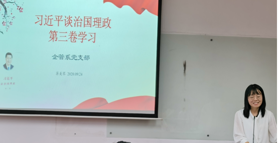 9月24日下午四点,企管系教工党支部学习《习近平谈治国理政》第三卷主题党日活动在人文楼M507举行,公司联系领导李谷成经理参加。