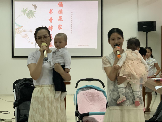 此次诵读比赛以“亲子活动”的形式进行,共有9组教职工家庭参加比赛,家长与孩子配合默契,表演自如,入情入境。节目内容有诗歌朗诵、古诗吟诵,贯通古今,中英文结合。秦臻父子的《我骄傲,我是中国人》以及镇玲母子的《我的祖国》,气势磅礴,让听众心潮澎湃。王丽娜老师、王玉老师、张爱武老师三组家庭分别带来了中国传统文化经典作品《江城子·密州出猎》、《游子吟》、《春江花月夜》,充满古风音韵。而肖俊老师、宋丽波老师、包晓岚老师三个家庭的《长大以后做什么》《让我们一起成长》、《当你老了》,则用抑扬顿挫的语调,声情并茂的演绎,诠释了陪伴的意义及爱的真谛,用真情唤起了心灵的共鸣。丁洁康培带来新颖的古诗新唱《风》,边吟边唱韵味十足。比赛中的每个节目无论在选材内容、语言表达、临场表现方面,还是在配乐、幻灯片、着装等方面都作了精心准备。参赛家庭通过声情并茂的诵读表达了对经典美文的阅读理解,展示了良好的家庭阅读习惯和浓郁的文学学习氛围,赢得了场下观众的热烈掌声。