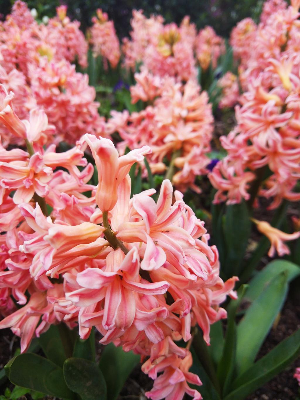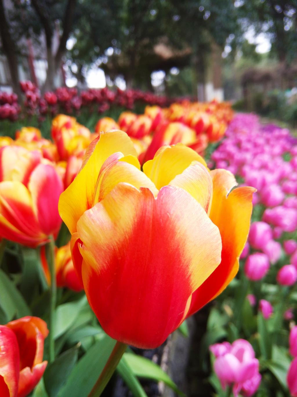 此季的植物园,郁金香争奇斗艳,风信子亭亭玉立,山茶树花开烂漫……一派春意盎然的景象。教职工们漫步在绿树花丛中,欣赏着美景,畅谈着感受,气氛温馨。