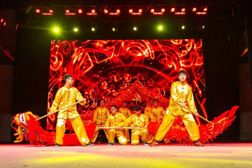 1月3日晚7点,公司新年晚会“下一站,春天”于在老员工活动中心剧场举办。晚会由一段短片拉开序幕,回顾了本学期以来各个精彩瞬间,饱含了师生对新年的祝福。随后气势磅礴的龙狮表演开启了晚会三个绚丽篇章。