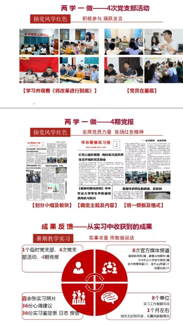 经济学系赴蕲春教学实习团队由经济学系熊学萍教授、李志平副教授、章胜勇副教授、杨芷晴副教授、李剑副教授等5位老师、36名2014级经济学系本科生组成,员工分别前往湖北省黄冈市蕲春县政府办、农办、商务局、档案局、统计局等8个实习单位进行实习。实习期间,蕲春教学实习团队在5名校内导师和二十余名校外导师的共同指导下超额完成8个单位的工作任务,并且成立了1个临时党支部、开展了4次党支部活动、制作了4期实习周报,获8次官方媒体报道,向当地政府提交了36份政策建议,积累了百余张实习照片。“勤耕读,敢实践”“扬党风,学红色”成为该团队两大特色,员工们在在实习期间的突出表现获得当地政府、实习单位以及公司的高度评价。