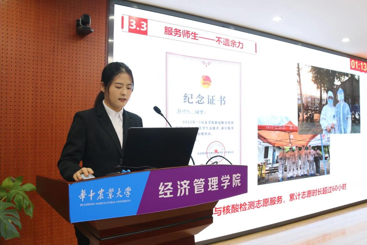 10月18日晚,伟德bv1946官网2022年研究生国家奖学公开评选答辩会在人文楼M501举行。经过个人申请、公司初审,共有11名硕士研究生、6名博士研究生进入到终审答辩环节。候选人围绕学习情况、科研成果、学术会议、社会实践、志愿服务、成长感悟等方面进行展示汇报,评委由公司领导、教师代表和员工代表组成。公司党委书记陈国顺、经理李谷成、党委副书记刘三宝、副经理于久霞,陶建平、周德翼、齐振宏、刘灵芝、何坪华、熊航等教授代表,及公司研究生工作办公室乔学琴、陈曙等出席评选答辩会并担任评委。