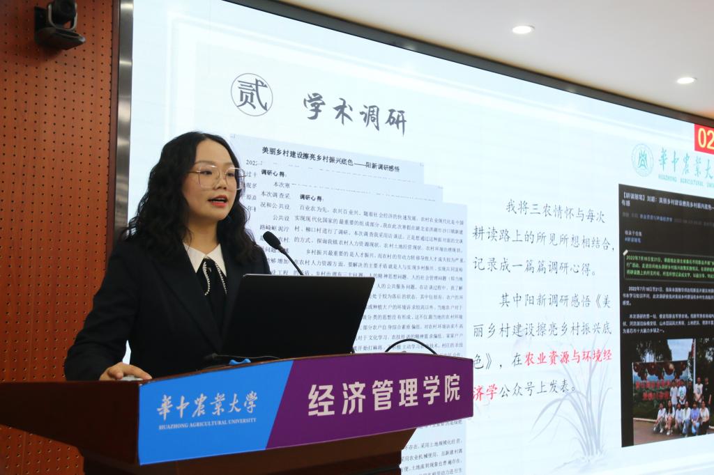 2021级农业管理硕士生刘颖在研究生期间,以通讯作者的身份在《环境保护》(CSSCI)上发表论文《“双碳”目标下的畜禽养殖绿色发展》。她积极参与创新创业大赛,获得第八届中国国际“互联网+”老员工创新创业大赛省级金奖。她多次赴黄石、襄阳、黄陂等县市调研,将三农情怀与耕读路上的所见所想相结合,记录成数篇调研心得。