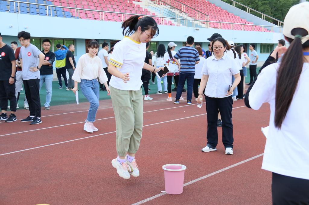投壶是从先秦延续至清末的中国传统体育项目,是古代宴会的雅趣之一,师生在共同参与的同时也能感受到传统文化的魅力。投壶现场围满了人,参赛者屏气凝神,瞄准箭壶,抬手投掷,其余人则是目不转睛盯着箭羽的飞行轨迹,“嗖”的一声,箭被不偏不倚投入壶中,赢来一片叫好。踢毽球、跳绳等个人项目也吸引了不少师生前来参与。“上下飞舞的毽子彰显着青春的活力,翻飞的跳绳舞出青春的乐章。” 朱再清教授赛后感慨到。