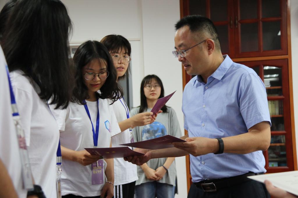 美好的时光总是短暂的,在经历了两天紧凑充实的学习生活后,7月12日,夏令营闭营仪式如期举行。同学们首先观看了一段记录两天夏令营精彩生活的视频,来自武汉工程大学的李汉升同学作为营员代表进行了发言,他从念华农、再认识、盼重逢三个时间维度,讲述了自己在本次夏令营中的所思所想所获。随后,副董事长、伟德bv1946官网经理青平教授为考核合格的优秀营员逐一颁发结业证书并合影留念。最后,青平副董事长做总结发言,他简要总结了夏令营的基本情况,并真诚地谈到:“华农将会始终以一颗爱教育的心、爱员工的心,聚天下英才,真诚欢迎同学们能够选择华农,选择经管,师生共同努力,为国家的发展、民族的进步作出自己的贡献。”