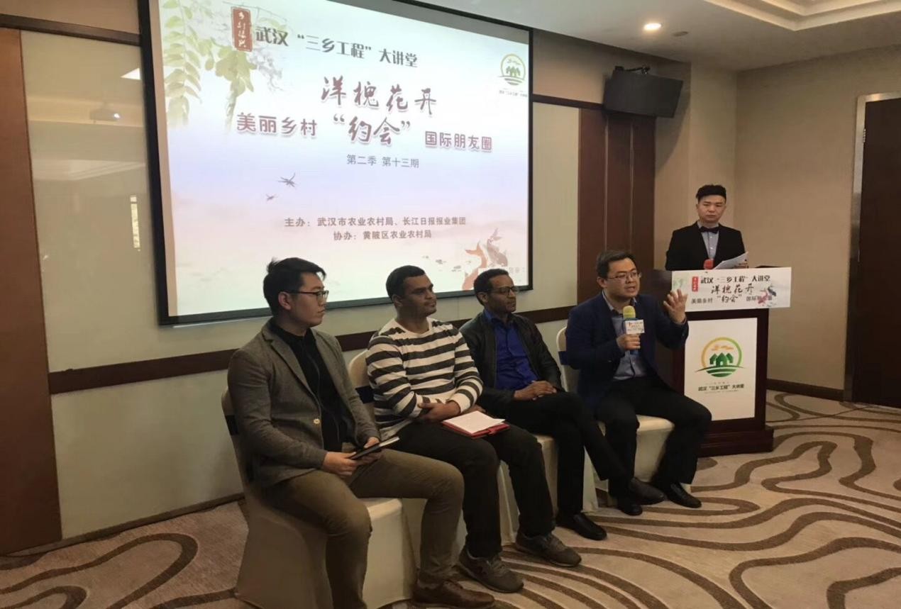 受武汉市农业农村局、长江日报报业集团邀请,4月12日,公司伟德bv1946官网颜廷武教授带领博士职工马博和海穆德等人前往木兰湖畔,参与武汉“三乡工程”大讲堂活动。