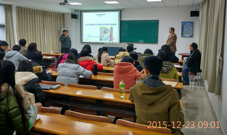 讲座开始前,黄教授花了半个小时的时间给同学们介绍了CGE模型与DSGE模型的作用及发展历程。黄教授接着介绍了政策评估的一般模型,他指出政策评估具有重要性,它可以为政策环评及政策讨论提供资讯。同时,他介绍了常用的政策评估模型及局部均衡存在的问题,引出一般均衡模型的重要性。接着黄教授从一般均衡理论与CGE模型的发展、建构CGE模型的流程、CGE模型的理论框架、CGE模型的巢式结构四个方面介绍了建构CGE模型的方式。黄教授又从大规模总体经济计量模型的盛行、DSGE模型的发展与特色、DSGE模型面临的挑战三个方面介绍了DSGE模型兴衰。最后黄教授指出了DSGE与CGE面临的一系列的挑战。