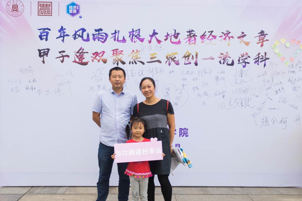 2012级硕士研究生陈义定带着自己的妻子和2个孩子来到华农。他激动地讲道,华农人杰地灵,是成就他的一个地方。他现在教授自己的孩子种禾苗,希望他们可以在劳作中感受到华农的耕读精神,做一个勤读力耕的人。此外,陈义定的外公和舅舅都从华农毕业,他也希望自己的孩子在华农攻读学业,4代人薪火相传。