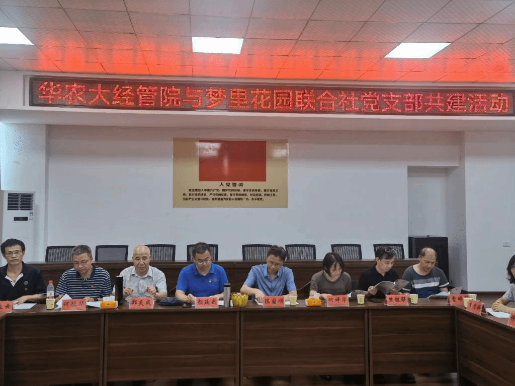 在孝昌县梦里花园花木专业合作社联合社,农业经济管理系教工党支部与联合社党支部开展了支部共建活动。与会同志重温了入党誓词,共同学习分享了习近平总书记在中国共产党成立100周年大会上的讲话精神。座谈会上,联合社秘书长沈腾报告了联合社2021年上半年的工作开展情况和下半年的工作打算,并提出了联合社目前发展中存在的几个问题。