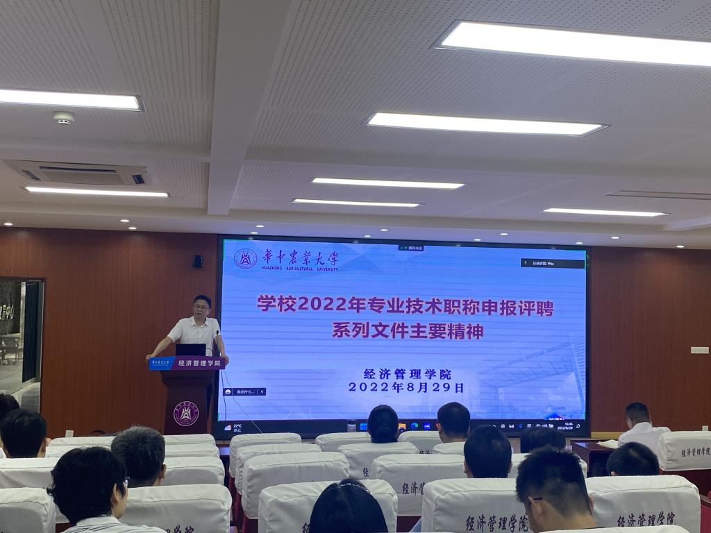 经理李谷成就暑期相关工作进行了总结,领学了《新时代高校教师职业行为十项准则》,开展师德师风专题教育,并传达了《bv伟德国际1946国有资产使用与处置管理实施细则》等资产管理相关文件精神,重点对资产使用、处置程序进行了解读。结合新学期教学秩序、课堂管理,本科生论文抽检,迎新季、开学季工作,专业建设,科学研究与社会服务等相关工作,李谷成进行了深入部署。李谷成从思想体系、指标体系、填报说明等三个方面介绍了第二轮“双一流”建设动态监测有关指标,深入分析了此轮监测指标体系所呈现的开放性、客观性、写实性和动态性等四个主要特征,并就指标体系中破“五唯”的重要体现进行了说明,呼吁全院教职工坚持守正创新、踔厉奋发,为建设特色鲜明的一流经管而努力奋斗。