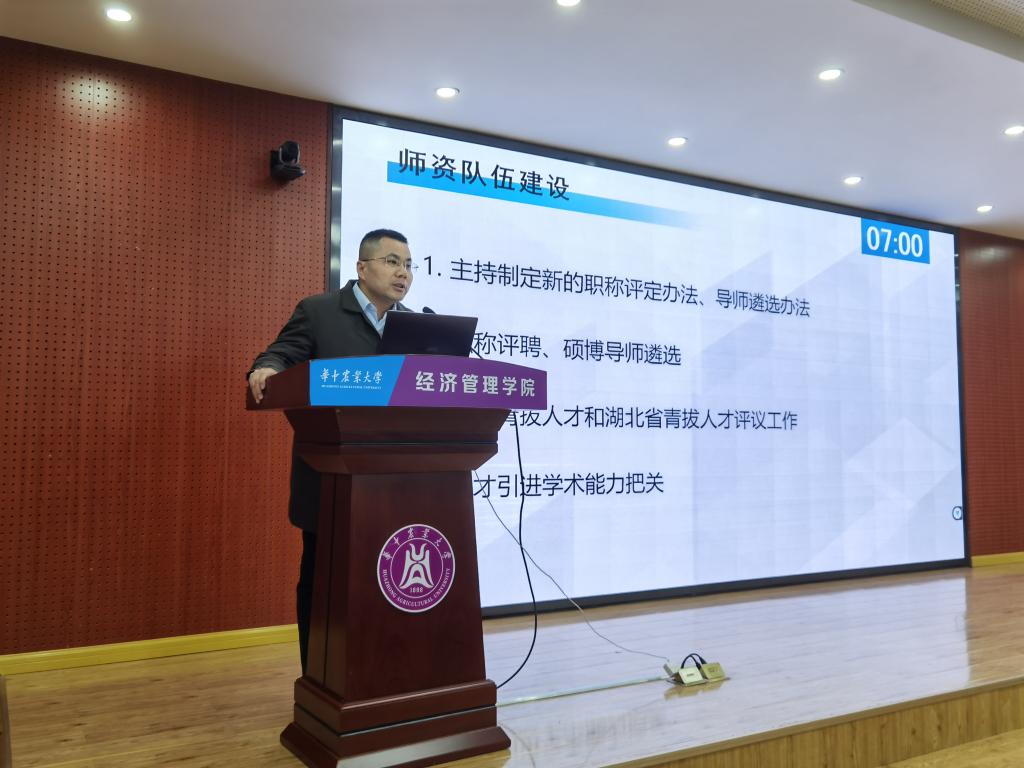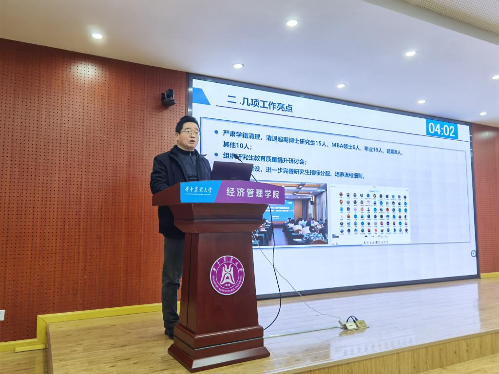 经理李谷成代表公司领导班子,以“全面一流开篇‘十四五’,内涵发展献礼‘二十大’”为题,围绕党建与思政工作、本科人才培养、学位与研究生教育、科研与社会服务、国际合作与交流、团队队伍建设、离退休与群团工作、改革创新与奋进之笔等八个方面,全面总结报告了公司2022年度工作。