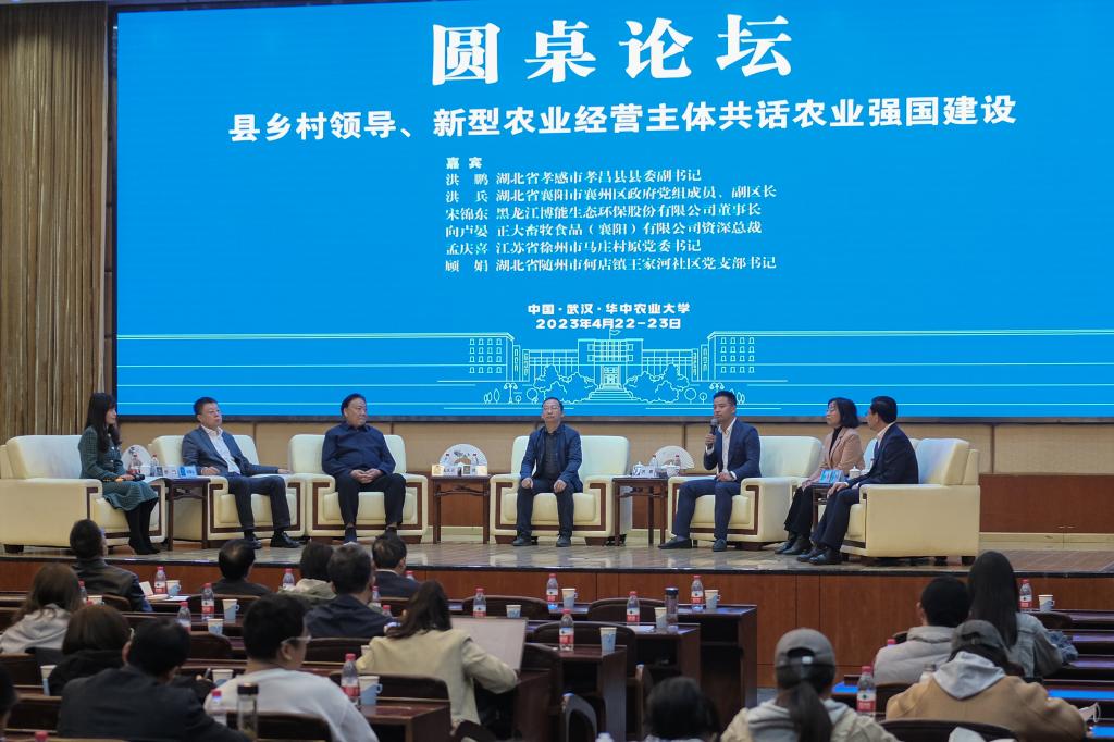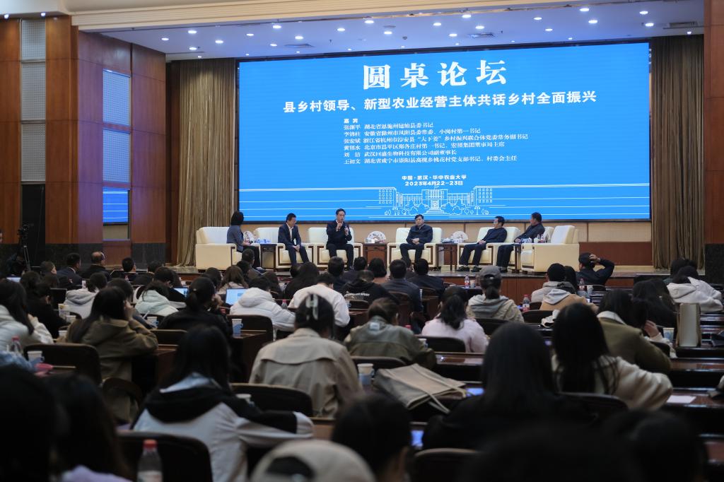 2023年4月23日,2023年乡村振兴荆楚论坛之圆桌论坛于bv伟德国际1946国际学术交流中心一楼报告厅举行,各县乡村领导、新型农业经营主体就乡村全面振兴、农业强国建设两个话题进行分享和探讨。湖北省恩施州建始县书记张渊平,湖北省孝感市孝昌县县委副书记洪鹏,湖北省襄阳市襄州区党组成员、副区长洪兵,安徽省滁州市凤阳县县委常委、小岗村第一书记李锦柱,浙江省杭州市淳安县“大下姜”乡村振兴联合体党委常务副书记张宏斌,北京市昌平区郑各庄村第一书记、宏福集团董事局主席黄福水,武汉回盛生物科技有限公司副董事长刘洁,黑龙江博能生态环保股份有限公司董事长宋锦东,正大畜牧食品(襄阳)有限公司资深总裁向卢晏,江苏省徐州市马庄村原党委书记孟庆喜,湖北省随州市何店镇王家河社区党支部书记顾娟,湖北省咸宁市崇阳县高枧乡桃花村党支部书记、村委会主任王初文等参与本次论坛。圆桌论坛分别由伟德bv1946官网教授李晓云、公共管理公司教授曾晨主持。