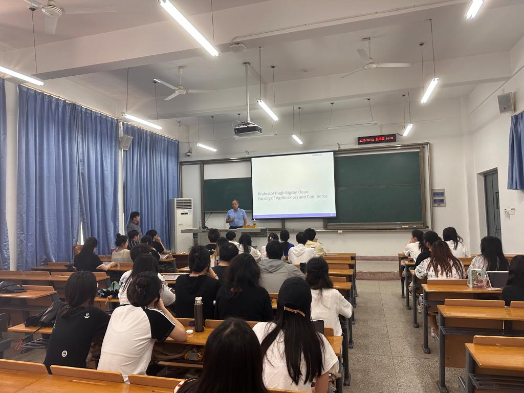 6月1日下午,Hugh Bigsby深入本科生课堂,观摩公司吴怡萍老师《战略管理》课堂,并与员工亲切交谈。