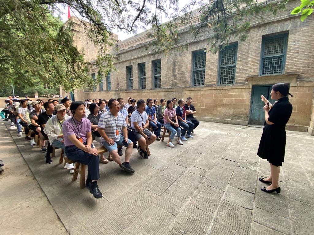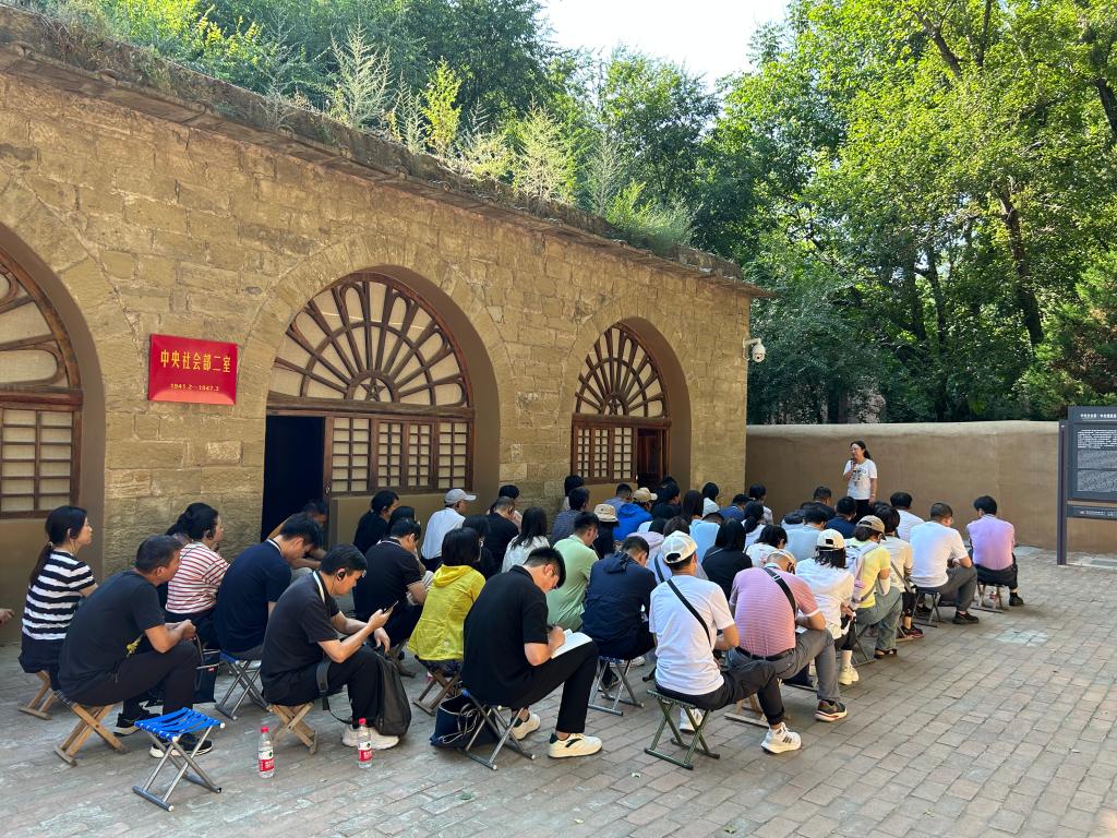 学员们在枣园革命旧址聆听学习由中国延安干部公司党史教研室讲师徐雯婷讲授的专题讲座《张思德精神与为人民服务》