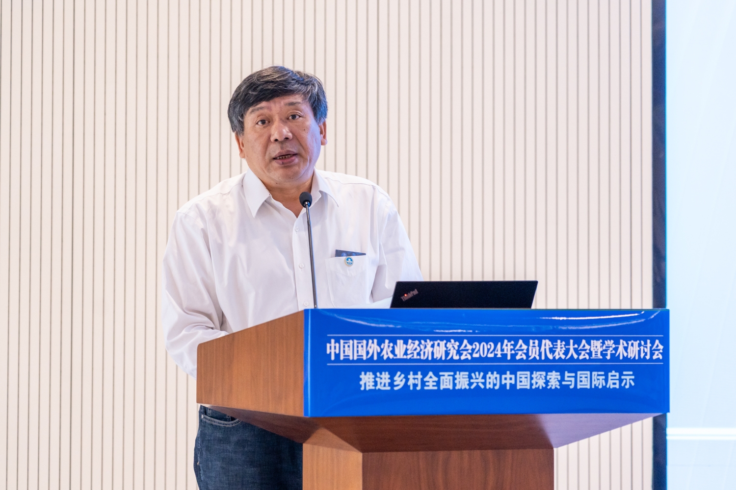 bv伟德国际1946党委副书记王从严,中国社会科公司农村发展研究所党委书记、副所长杜志雄研究员先后致辞。王从严在致辞中提到,本次会议旨在深入探讨和交流推进乡村振兴中的规律和认识,及时总结中国实践经验,借鉴国际先进理念,推动乡村全面振兴。他对莅临现场的各位专家和领导表达了热烈欢迎,对长期以来关心并支持公司发展的各位学者、同仁、老师和同学表达了衷心的感谢。王从严强调了全面推进乡村振兴的重要性及意义,列举了乡村振兴取得的重要成效,向在场专家学者表达了加快构建中国农民经济管理学科自主知识体系,拓展中国式现代化理论体系,为推动乡村建设、乡村发展出谋划策的希望,并预祝了本次研讨会的圆满成功。同时,他对会内同仁表达了崇高的敬意,并呼吁会内同仁在新时代背景下,加强国内外交流合作,讲好中国故事。杜志雄在致辞中祝贺了研究会在国外农业发展状况的了解、跟踪和政策研究方向的总结、启示等方面取得的丰硕成果,肯定了研究会在推动国内外经济研究、促进国际交流合作推动农业农村现代化过程所发挥的重要作用,赞赏了会内成员研究心血在促进农业建设的改革创新与落地实施提供的有利支撑。他谈到:“这不仅是一次回顾和总结研究会及学科发展的机会,更是一次展望和谋划未来的契机。”他强调以科技进步为基础的新质生产力和制度性开放已然日益成为农业发展的新的驱动力量,希望同仁们能够以实现中国式现代化推进中华民族伟大复兴为根本目标,继续发挥桥梁和纽带作用,加强国内外农业经济领域的交流与合作,推动农业农村现代化融合发展。