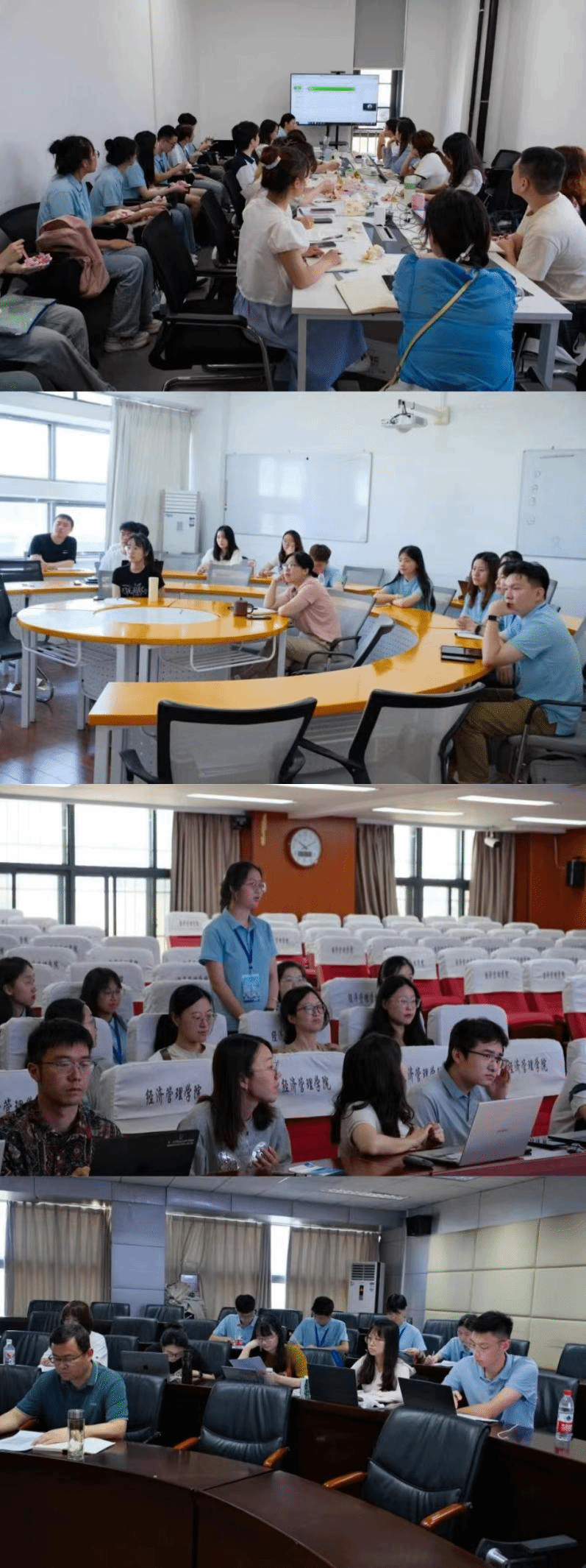 开营仪式后,经理李谷成以“经世致用,问道狮山”为主题,为营员们详细介绍了校情、院情、人才培养以及招生政策,王玉泽、池韵佳、曾光三位老师分别就农林经济管理、工商管理与应用经济学学科点情况进行详细介绍。随后,鲍勇教授通过分享一项自己近期的研究,为营员们介绍了空间自回归Tobit模型,通过学术微报告,带领员工徜徉学术海洋。4日下午,专业面试在人文社科楼进行,全面考察了营员们的综合素养。