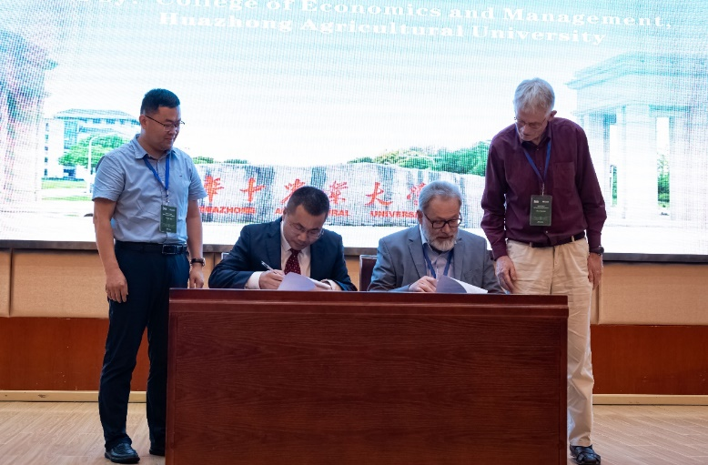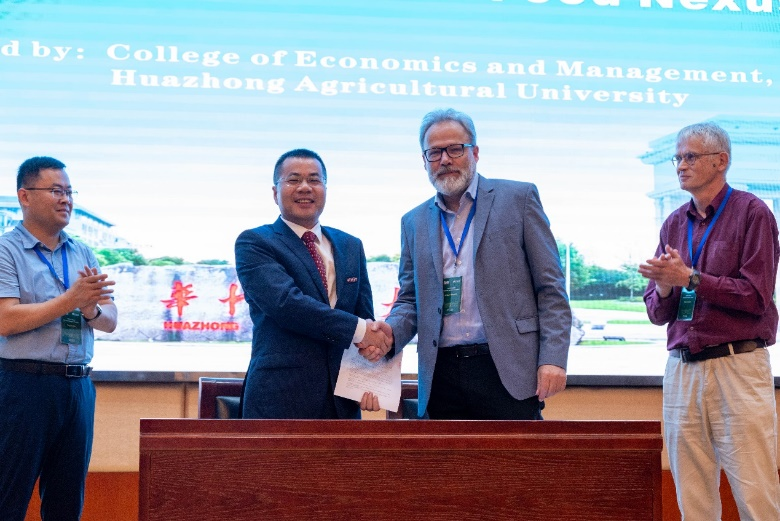 会议闭幕式上,在Nico Heerink教授和颜廷武教授以及所有在场参会嘉宾的共同见证下,伟德bv1946官网李谷成经理与瓦赫宁根大学农业经济与政策研究系主任Justus Wesseler教授共同签署了《伟德bv1946官网与瓦赫宁根大学社会科学部合作框架协议》,并为SuReFood Alliance可持续资源管理与食物系统研究联盟进行了揭牌仪式。与会学者对本次国际学术年会的组织和交流给予了高度肯定,为未来SuReFood Alliance进一步促进跨学科、跨区域研究奠定了坚实的组织基础和合作前景。