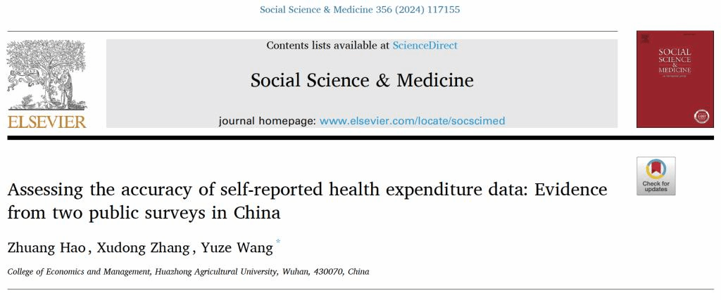 近日,由伟德bv1946官网郝壮和王玉泽副教授、研究生张旭东共同撰写的学术论文“Assessing the Accuracy of Self-Reported Health Expenditure Data: Evidence from Two Public Surveys in China”发表于社会医学领域国际知名期刊 Social Science & Medicine。该研究得到了国家自然科学基金、bv伟德国际1946自主创新基金的资助。