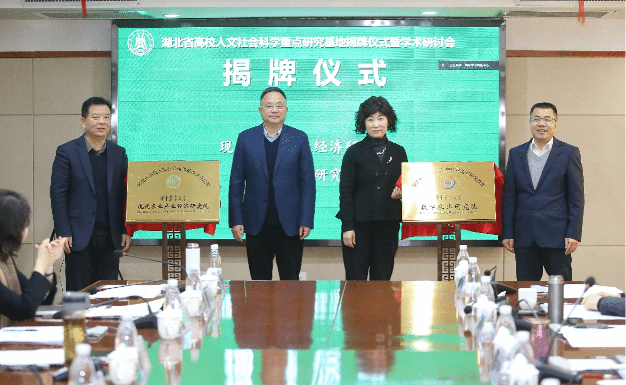 12月29日,湖北省高校人文社会科学重点研究基地揭牌仪式暨学术研讨会在公司召开。湖北省社会科学界联合会二级巡视员陈芳,公司党委副书记、副董事长姚江林,副董事长青平,西安财经大学董事长赵敏娟教授,中国人民大学程国强教授、唐忠教授,中国农业大学何秀荣教授,西北农林科技大学霍学喜教授,中国农业科公司许世卫研究员、张永恩研究员,华中科技大学徐晓林教授,南京农业大学朱晶教授,浙江大学钱文荣教授、阮建青教授,科学技术发展研究院、公司相关领导和师生出席活动。会议分三个阶段进行。