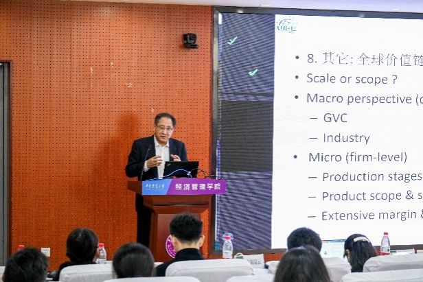 殷晓鹏教授做了题为“全球价值链(GVC)的发展与其理论分析框架”的主旨报告。报告深入探讨了全球价值链的概念、发展历程及其面临的挑战,分析了全球价值链在推动国际分工深化中的关键作用,强调了全球化背景下各国和地区在价值链中的角色变动。同时,报告介绍了相关理论分析框架,为全球价值链研究提供了重要的理论支持。