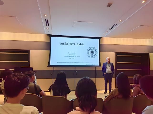 在芝加哥联邦储备银行,高级政策顾问David Oppedahl以农业信贷体系为切入点,系统性地阐释了货币政策传导机制。他通过“联邦基金利率-商业银行基准利率-农业贷款利率”的传导链条,生动展现了量化宽松等政策工具如何影响农场主的融资成本及农产品国际贸易的信贷环境。随后,师生们来到被誉为“金融史教科书”的联邦储备银行货币博物馆。在近千件展品中,从1914年美联储初创时期的票据到2008年金融危机时的紧急流动性工具文件,完整呈现了美国货币金融体系的演进轨迹。2022级农林经济管理专业本科生王佳琪谈到“这一件件展物不仅是货币信用的具象化符号,更串联起从金本位到现代信用货币的演进脉络——它让我理解了国际农产品贸易结算体系背后的金融根基,这堂‘金融历史课’比任何教科书都震撼。”
