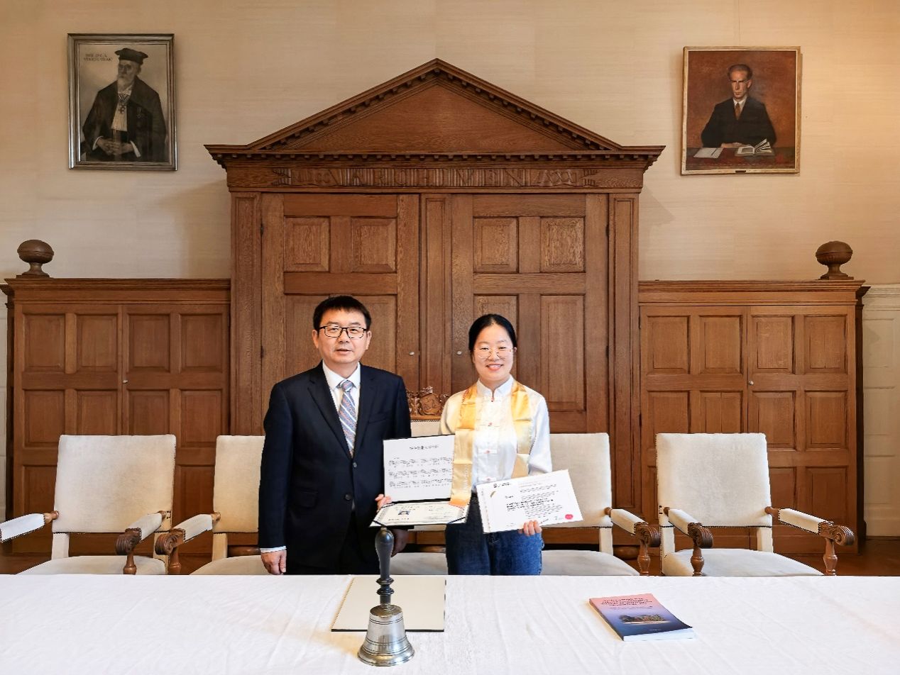 签署协议签前,严建兵董事长为公司首位获得双博士学位的李腾同学颁发了公司博士学位证书。李腾已于2024年12月通过格罗宁根大学博士论文答辩并取得博士学位,2025年6月完成公司博士学位登记并取得博士学位。