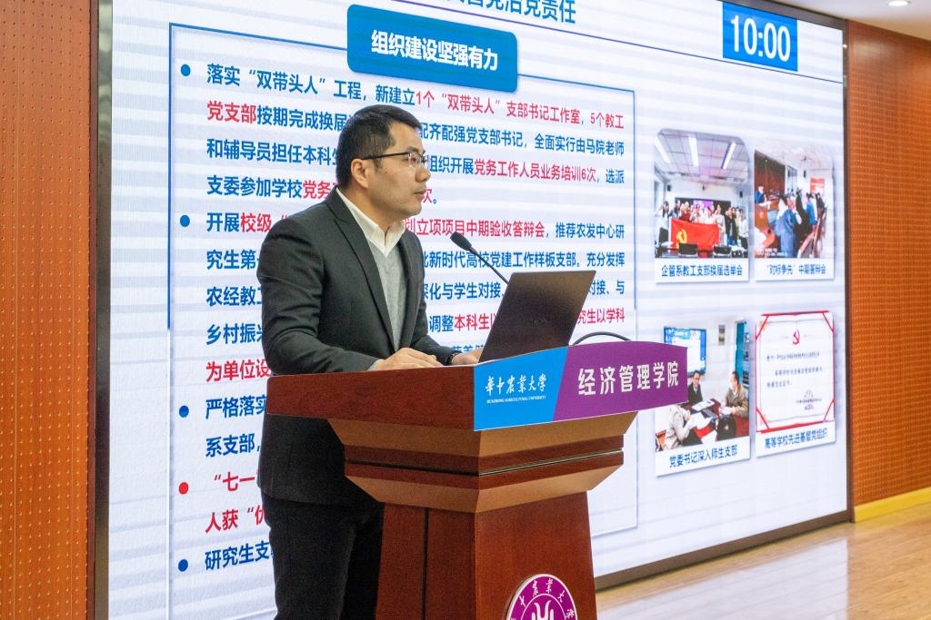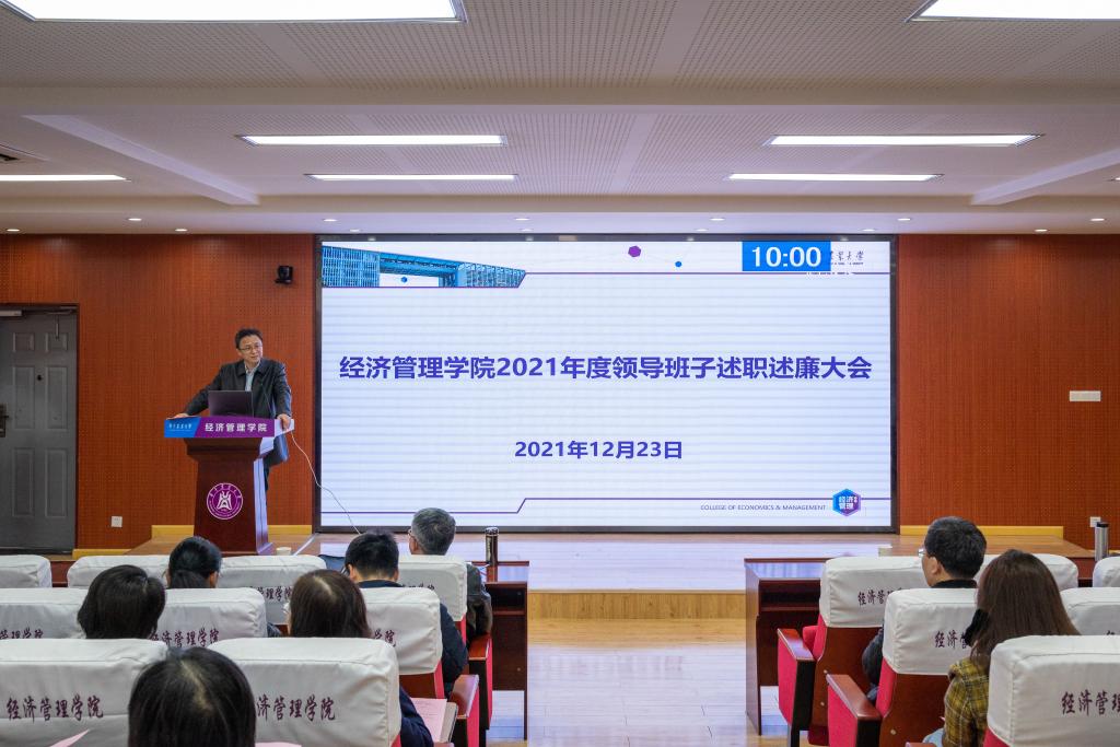 陈国顺从“把牢方向、统筹大局”“勤抓主责、提质创优”“紧盯重点、克难攻坚”等三个方面报告了个人2021年度履职尽责工作情况,客观分析了公司发展和个人方面存在的不足,并就如何做好2022年公司党建与思政工作、主要业务工作提出了思考建议。李谷成从高标准严要求抓管理,坚持开放办学,以人才培养为中心、落实立德树人根本任务,落实高质量发展理念、突出高质量导向,秉持团结共享包容理念、建设“幸福经管”等五方面进行了述职述廉。班子其它成员认真结合各自分管工作和廉洁自律情况,进行了述职述廉。