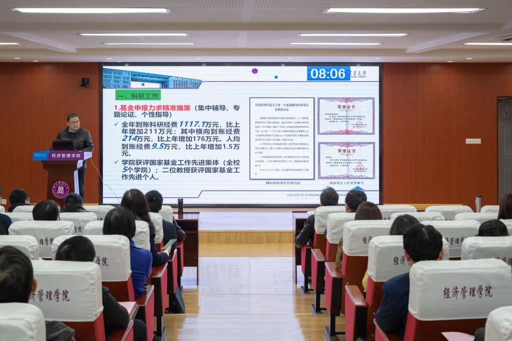 经理李谷成代表公司领导班子,以“持续推进‘五个一流’,全面开启‘十四五’发展新征程”为题,围绕党建与思政工作、本科人才培养、学位与研究生教育、科研与社会服务、国际合作与交流、人事人才、离退休与群团工作、改革创新与奋进之笔等八个方面总结了2021年度公司工作。