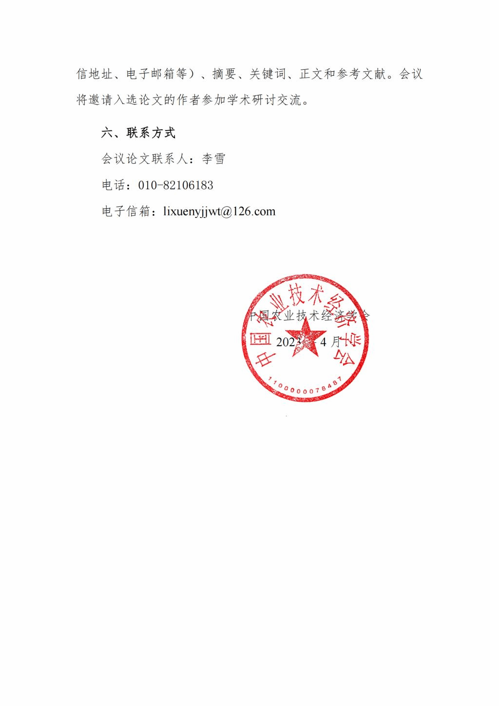 邀请函|中国农业技术经济学会2023年学术研讨会征文启事