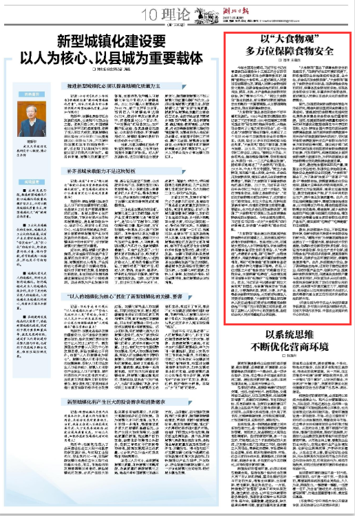 核心提示: 3月23日,《湖北日报》理论版刊发公司伟德bv1946官网教授、乡村振兴研究院特聘研究员闵师题为《以“大食物观”多方位保障食物安全》文章,阐述了“树立大食物观”理念的内涵与意义。