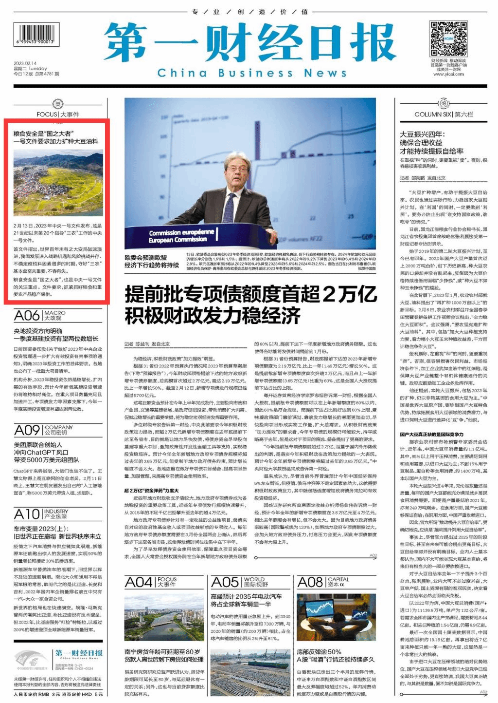 核心提示:2月13日,2023年中央一号文件发布。九三学社湖北省委经济专委会副主任、bv伟德国际1946经济管理公司教授何可老师就此接受第一财经记者采访,相关内容刊发于《第一财经日报》2023年2月14日第A01版、第A02版。