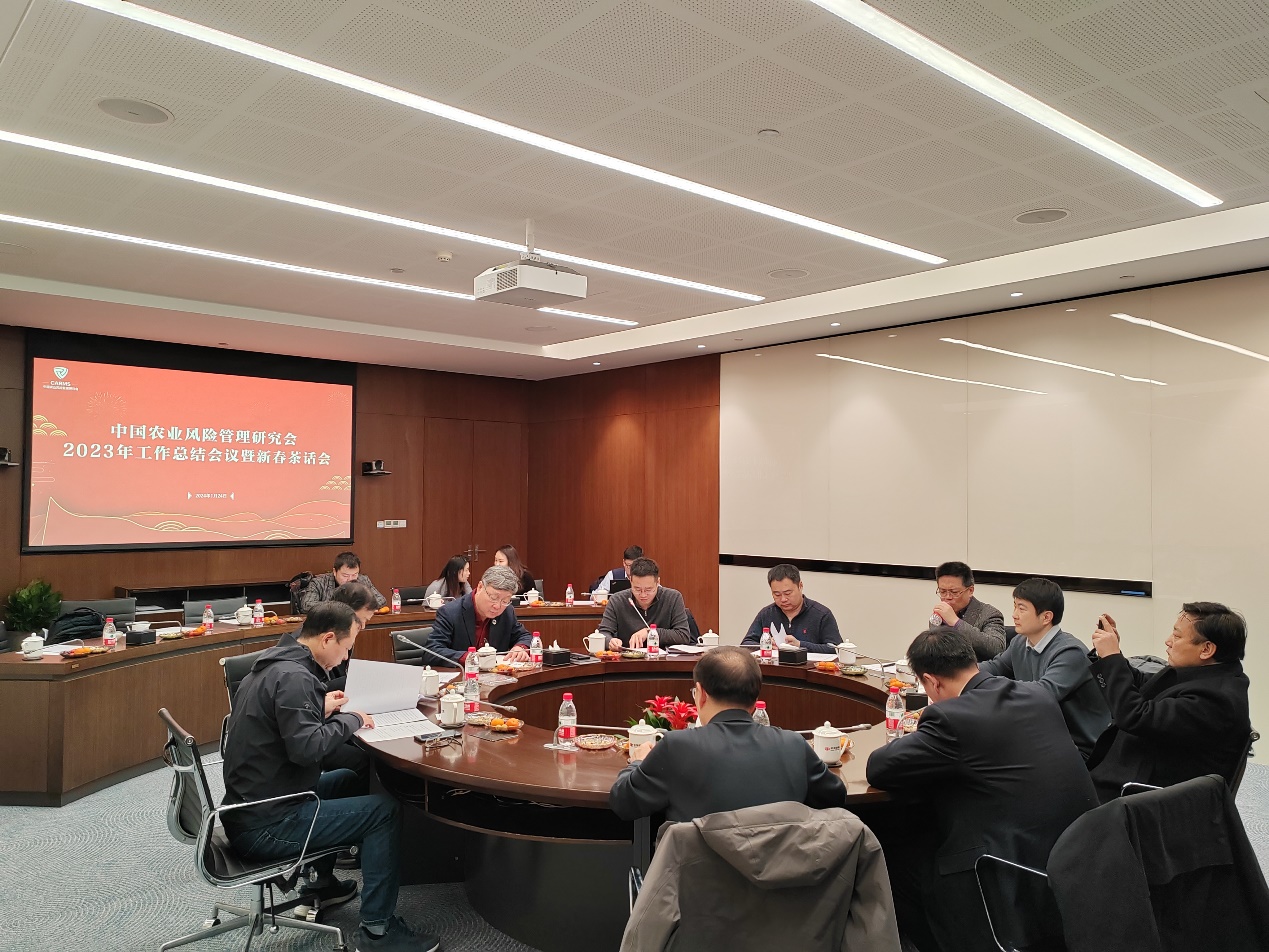 2024年1月24日,中国农业风险管理研究会2023年工作总结会在北京中华保险大厦举行。中国农业风险管理研究会会长张红宇和分支机构负责人出席会议,研究会常务副会长兼秘书长唐园结主持会议。公司教授李剑、熊涛代表华中农业风险管理研究中心参加会议,并作中心年度工作报告。