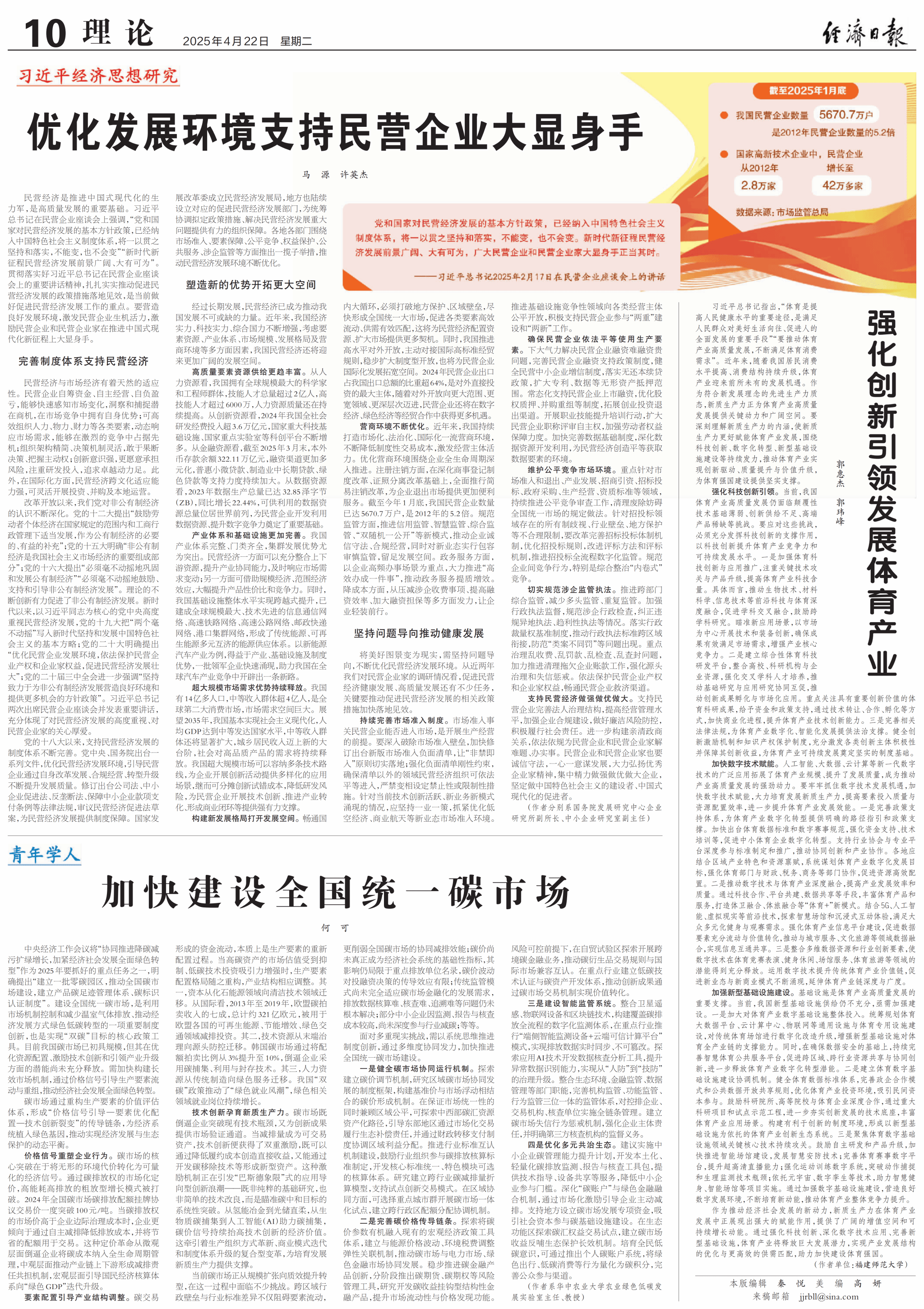 中央经济工作会议将“协同推进降碳减污扩绿增长,加紧经济社会发展全面绿色转型”作为2025年要抓好的重点任务之一,明确提出“建立一批零碳园区,推动全国碳市场建设,建立产品碳足迹管理体系、碳标识认证制度”。建设全国统一碳市场,是利用市场机制控制和减少温室气体排放、推动经济发展方式绿色低碳转型的一项重要制度创新,也是实现“双碳”目标的核心政策工具。目前我国碳市场已初具规模,但其在优化资源配置、激励技术创新和引领产业升级方面的潜能尚未充分释放。需加快构建长效市场机制,通过价格信号引导生产要素流动与重组,推动经济社会发展全面绿色转型。
