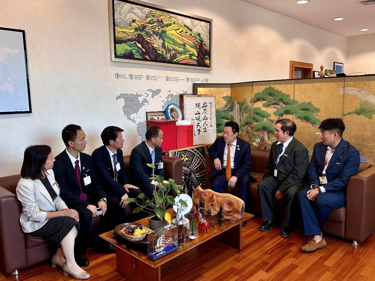 在FAO总部,总干事屈冬玉博士亲切会见了代表团一行。屈冬玉对代表团团长、公司副董事长王建鸿指出,公司在青年人才培养、科学研究以及国际减贫等领域成就显著,他对此表示赞赏。屈冬玉希望公司继续发挥学科优势,积极参与FAO相关合作项目,为推动全球粮食安全与农业可持续发展贡献中国智慧与高校力量。