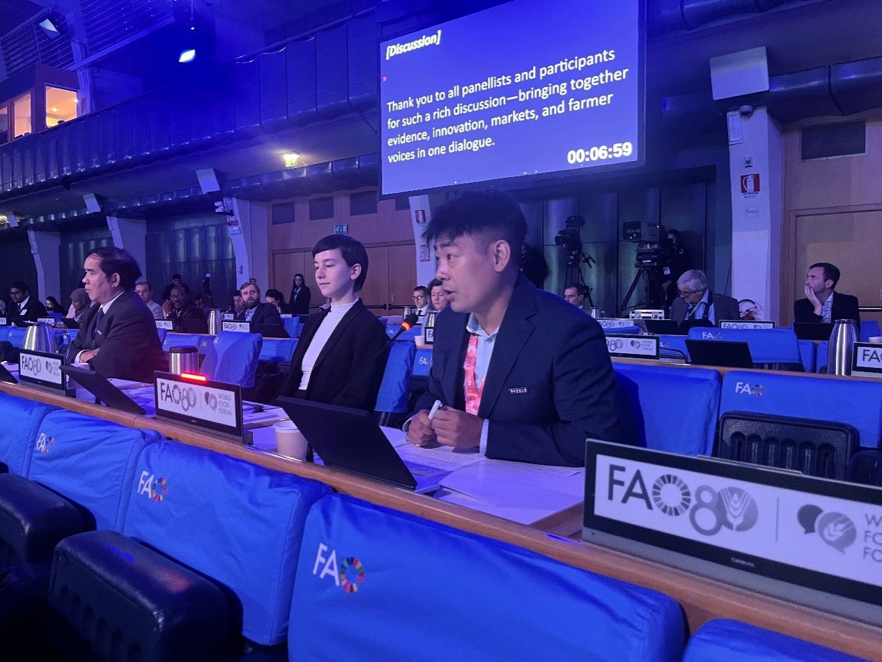 代表团受邀出席了FAO旗舰活动,即“一国一品”倡议实施高级别论坛。该倡议聚焦各国农业潜力,筛选具有国家特色或文化遗产价值的农产品,推动其进入稳定市场,成为农业转型的重要抓手。郝壮副教授作为青年代表在论坛发言,重点介绍了公司及全球粮食安全青年科学家联盟在搭建青年科研平台、协同应对全球粮食安全挑战等方面的积极探索,并与来自其他95个FAO成员国的代表共商粮食安全未来路径和青年责任,获得了与会代表的高度评价。