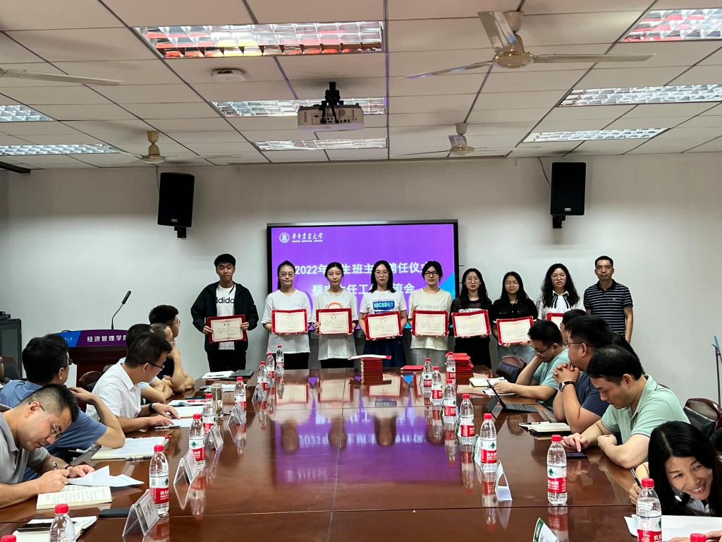 8月28日下午,伟德bv1946官网举行“2022级新生班主任聘任仪式暨班主任工作”交流会。公司党委书记陈国顺、经理李谷成、党委副书记刘三宝、副经理罗小锋及全体2022级新生班主任、2022级新生辅导员、员工班主任助理等50余人参加会议。会议由公司党委副书记刘三宝主持。
