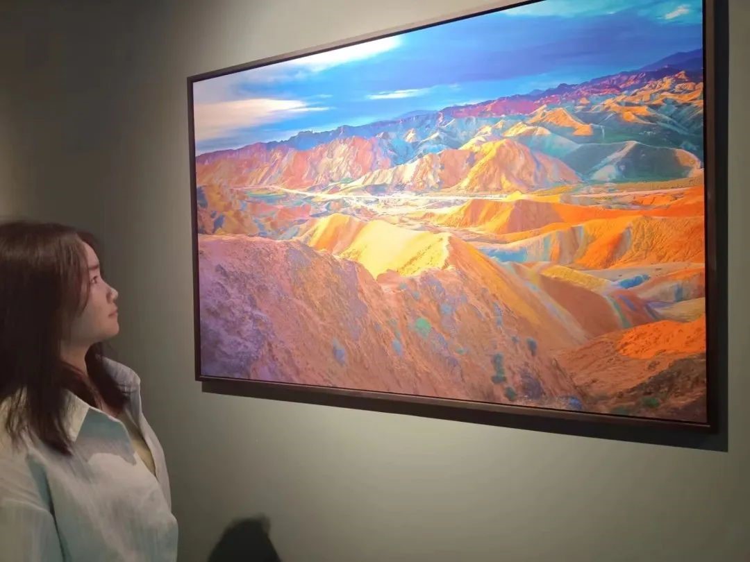 经济2205班易苏苏在欣赏摄影作品《中国丹霞》