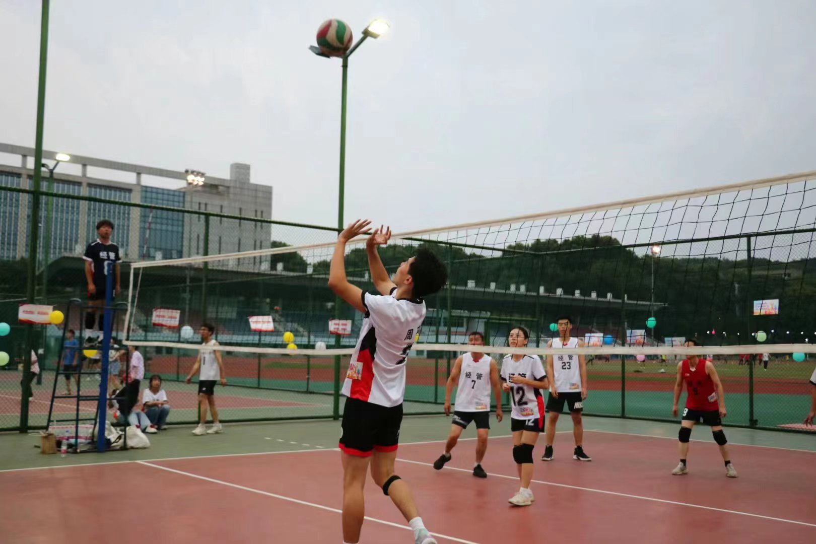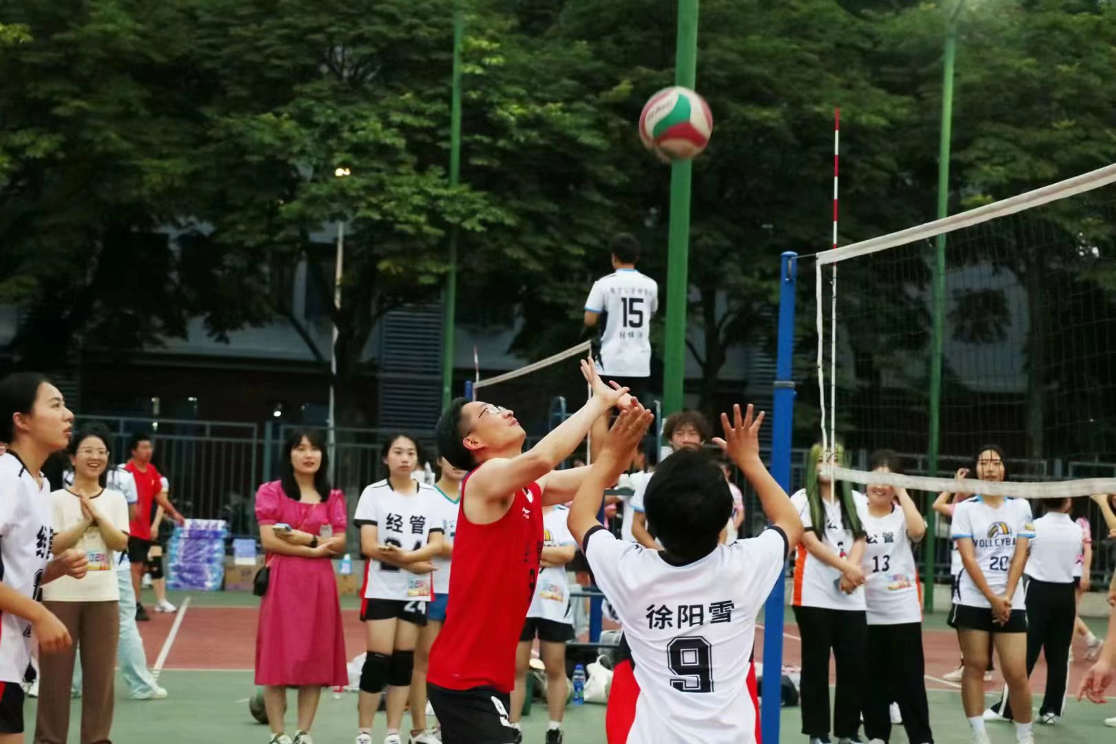 6月2日傍晚,东运动场排球场上热闹无比,球员在场上奋力接球扣球,场下呐喊声和喝彩声不断。在这个微风徐徐的夜晚,一场由师生共同参与的欢送毕业生——师生融乐排球赛燃情开赛,经管、公管师生分别组成四支队伍展开比赛。公司领导、教师代表、各年级员工代表参与本次活动。公司党委书记高翅出席本次活动,并致开场词。