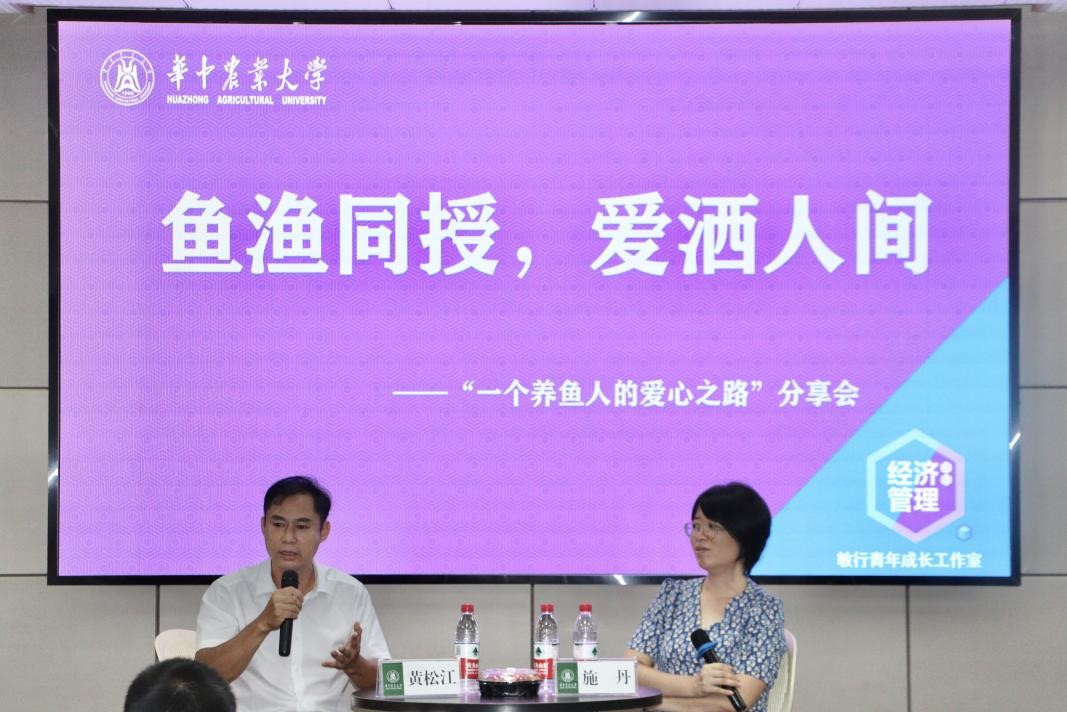 2023年9月16日晚7点,来自广西桂平的“全国最美志愿者”、bv伟德国际19462023年乡村产业振兴带头人培育“头雁”项目学员黄松江做客伟德bv1946官网知行空间,向年轻学子们讲述他以鱼创业、授人以渔的爱心之路。企业管理系教工党支部书记、人力资源管理专业负责人施丹副教授主持活动。