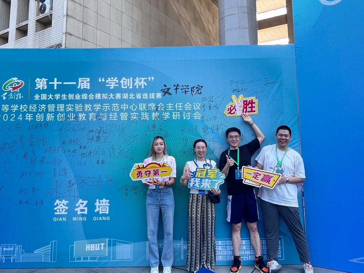 公司代表队与指导教师在湖北省决赛签名墙合影