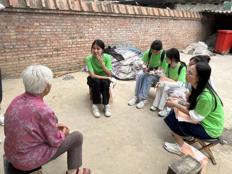 实践队员与桃宝裕村老人交谈