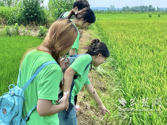 实践队员调研“稻鸭虾”共生模式
