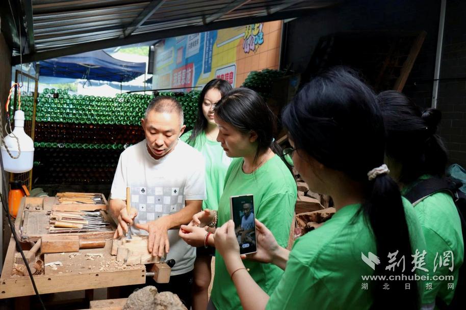 凿细胚、镂空……在鸦沐羽村,实践队员在傩面具制作传承人汪儒斌的带领下体验了傩面具制作工艺,“要制作出这样形象鲜明、古朴大气的傩面具并不容易,这要求制作者同时具备绘画、木雕和造型能力,因此很多制作人都转行了。”团队调研发现,傩面具的传承面临制作周期长、成本高昂等诸多挑战,而将傩面具与数字化技术结合、开发相关文创产品是汪儒斌正在进行的尝试。