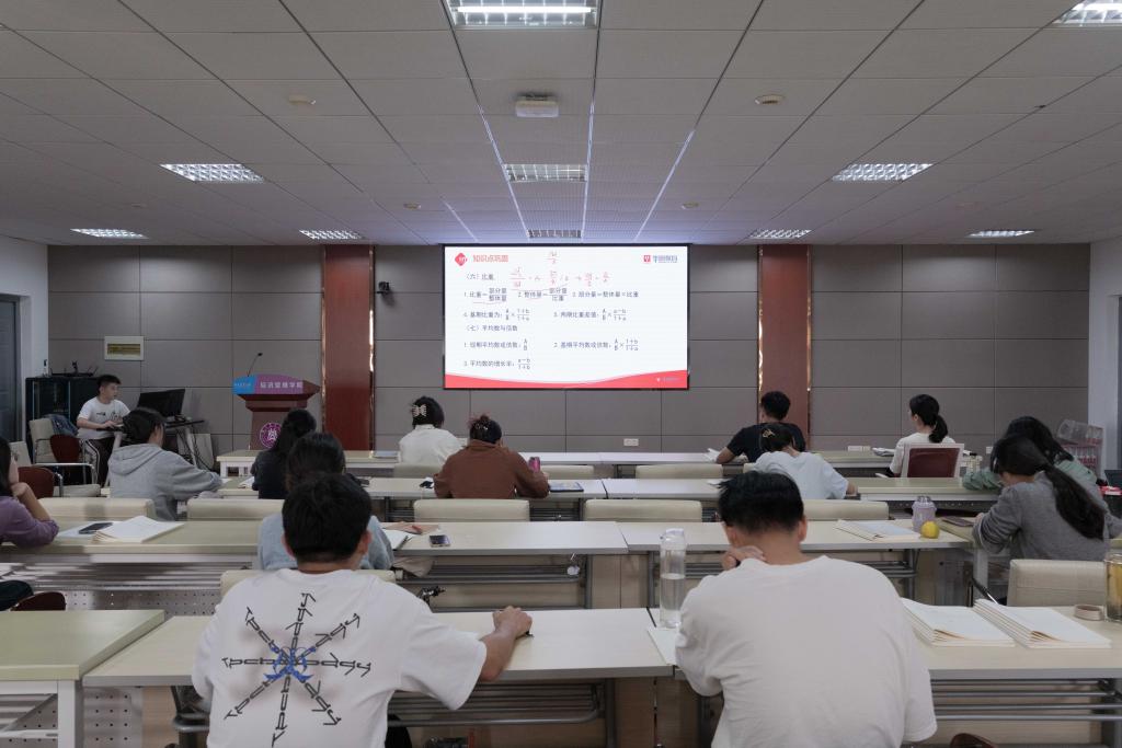 活动伊始,培训老师为同学们详细讲解了银行考试的分类及注意事项,并对接下来的培训日程进行了概览介绍。通过引入资料分析、混合增长率等概念,培训老师针对核心考点向同学们分享了一系列解题方法并加以案例应用分析,使同学们能够更加清晰有效地理解题意。随后每位参与培训的同学都收到了习题集作为本次培训的核心资料,以更加系统地帮助同学们复习和巩固知识点。