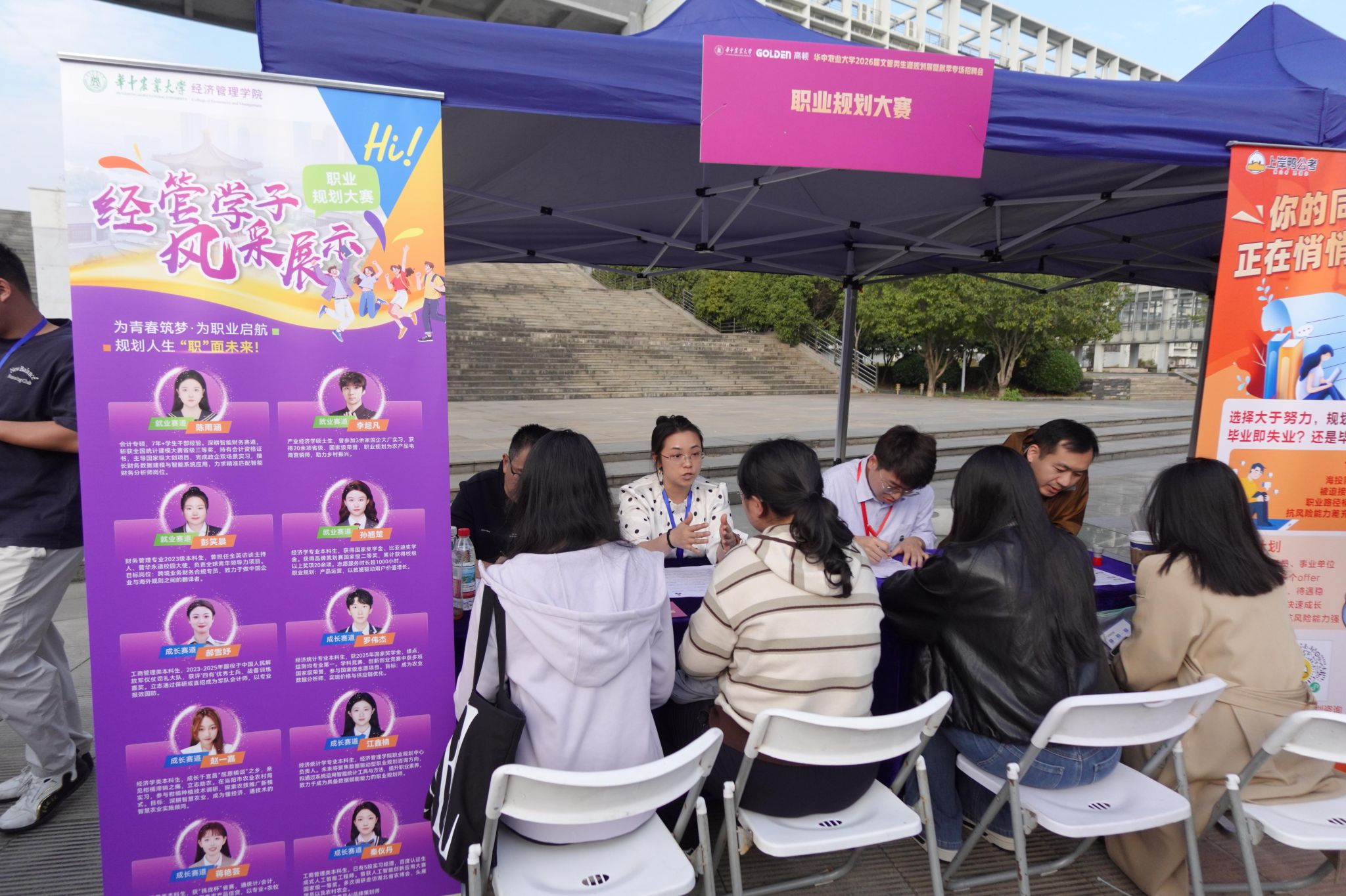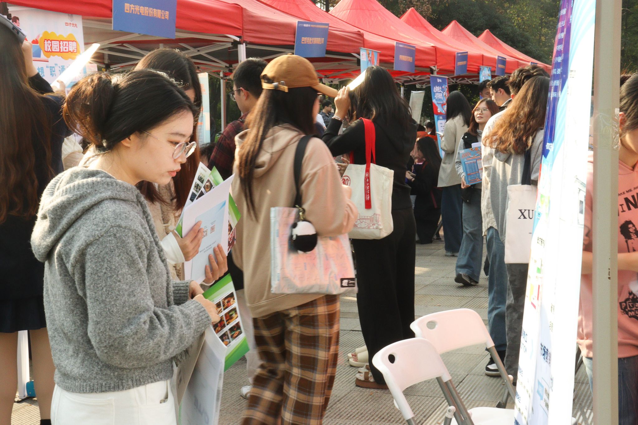 南湖新闻网讯(通讯员 杨梓蔚 吴娇)11月15日下午,bv伟德国际19462026届文管类生涯规划展暨秋季专场招聘会在人文社科楼附楼外广场举行。活动旨在精准对接文管类员工多元化发展需求,搭建毕业生与用人单位双向选择平台,由本科生院、研究生院、伟德bv1946官网联合主办,文法公司、外国语公司、公共管理公司、华农林肯公司协办,吸引了三十余家企业及近千名员工参与。
