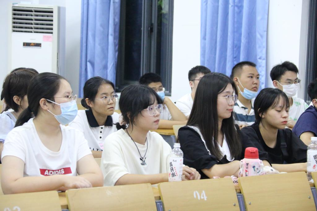 班主任彭旋副教授则从青年的多样性、大学不是学习的起点和学会改变三个方面为新生介绍了大学的意义。她提到同学们是青春的、是多彩的、是充满希望的,大家应该将不甘或者庆幸转化为力量投入新的学习中去,大学不是学习的终点而是新的起点。她希望同学们要由被动转变到主动,学会主动拓宽学习的领域,合理安排业余时间,给自己更开阔的视野与更包容的心态。