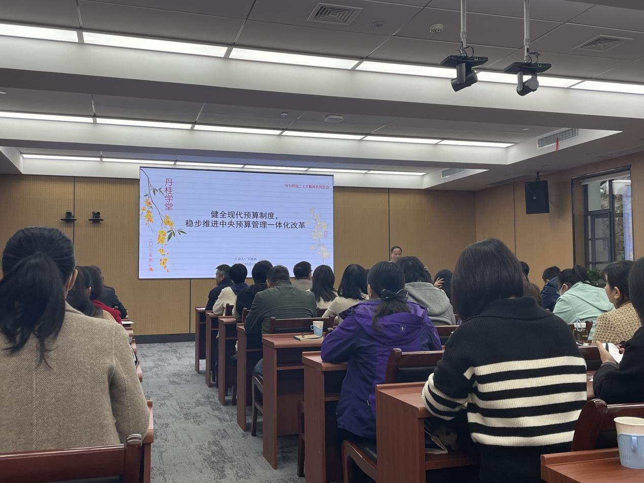 11月17日,财资部、会计系教工党支部、审计室、后勤财务于干训楼一楼3号报告厅开展第一场联学活动,活动主题为《健全现代预算制度,稳步推进中央预算管理一体化改革》,会议由王建鸿副董事长主持。