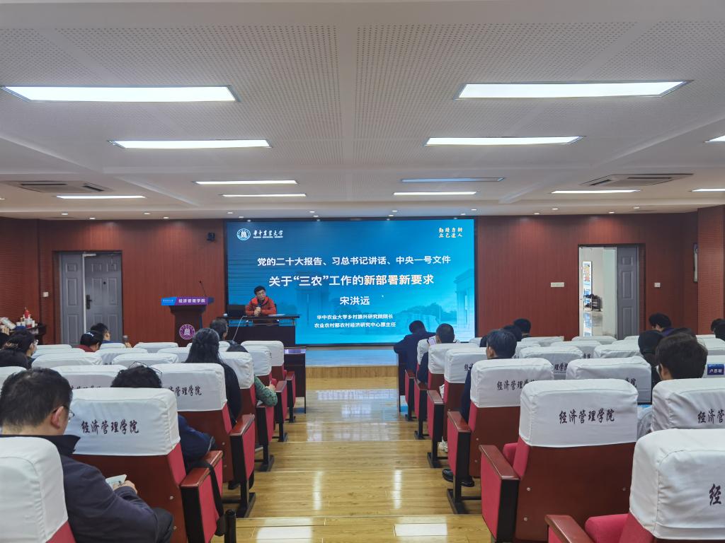 3月9日下午,公司乡村振兴研究院经理宋洪远教授应邀作学习党的二十大和2023年中央一号文件精神“精读精讲”专题辅导报告。全院教职工及部分研究生听取了报告。报告会由公司党委书记陈国顺主持。