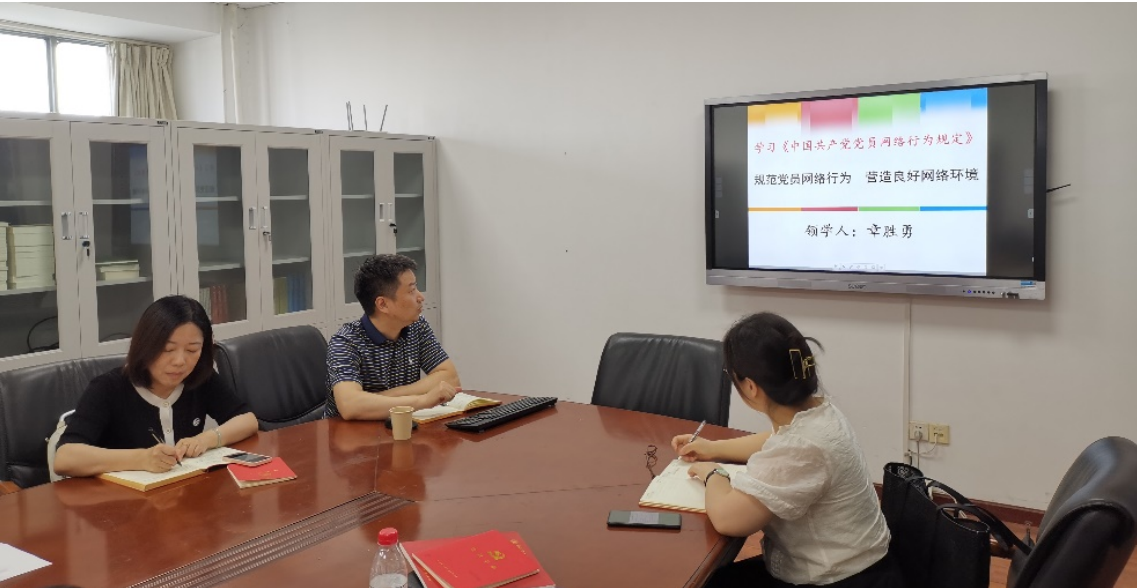 2024年5月23日,经济学系教工党支部全体党员教师在人文楼M522开展“党纪学习和课程思政建设交流”主题党日活动。在认真学习《中国共产党党员网络行为规定》、《习近平总书记对公司思政课建设做出的重要指示精神》等文件后,熊巍老师分享了统计学课程思政教学创新的经验,并与全体党员教师讨论交流。